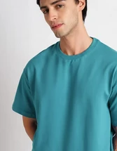 Kepto Mens Solid Oversized T-shirt- Teal Size Medium