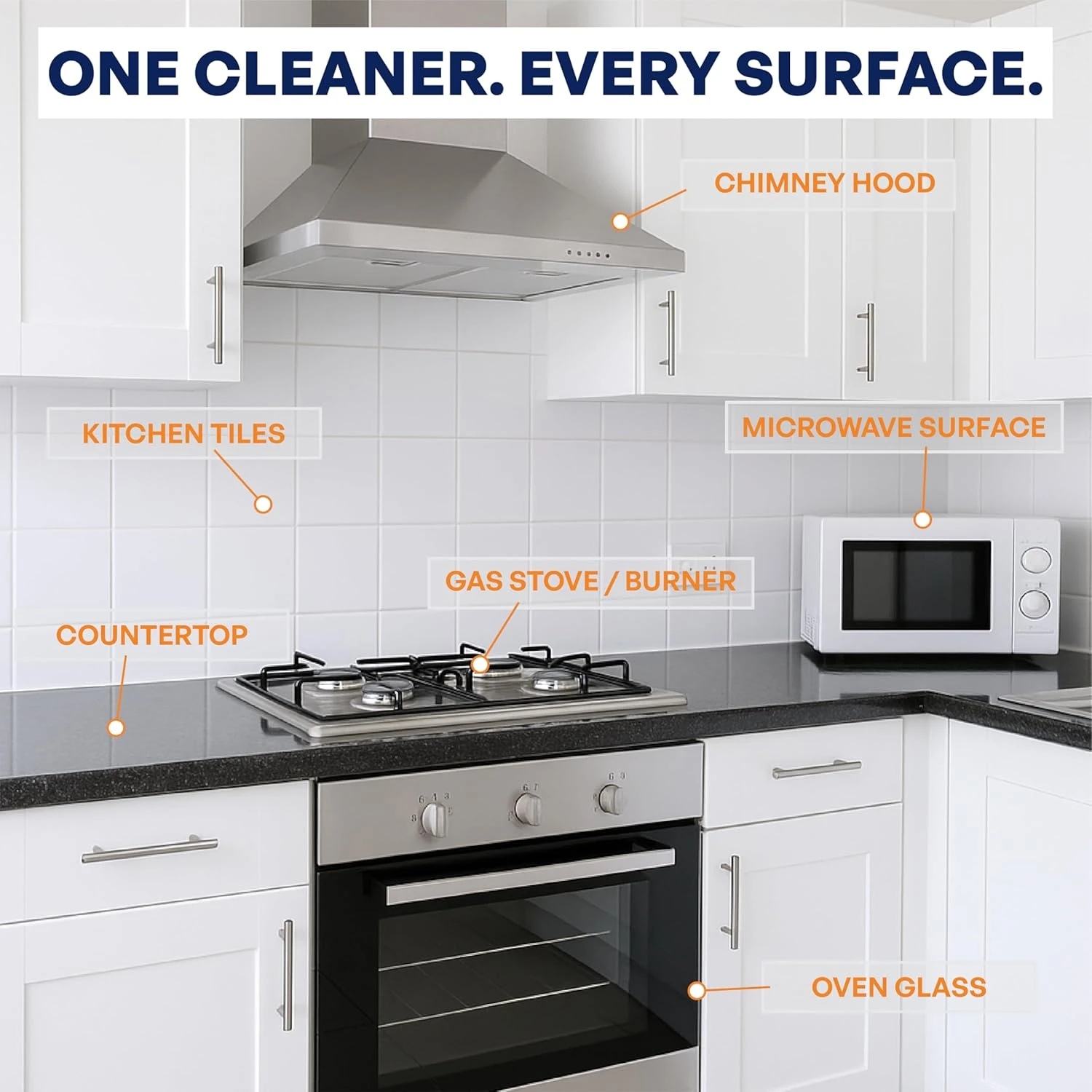 Kitchen & Tap Cleaner Combo – 300ml Each | Powerful Stain & Limescale Remover for Grease, Stoves, Chimneys, Faucets, Showerheads, Sinks, Mirrors & More | Fast-Action, Streak-Free Shine