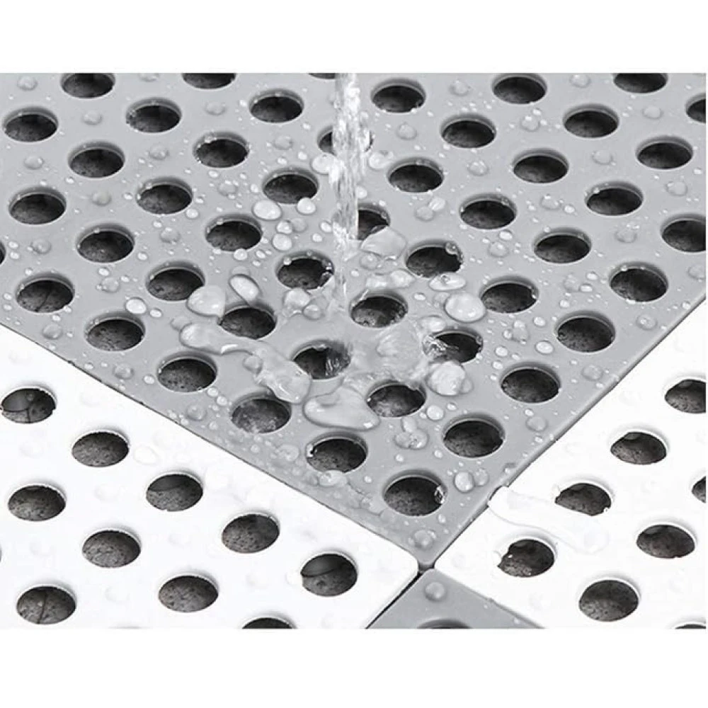 Made of high-quality PVC, safe and non-toxic, odorless and flexible. Safe Material - Our splicing anti-skid floor mat provides a safe bathroom for you every day. Suction Cups - Rubber floor Tile features 25 powerful suction cups, that help hold in place on smooth, clean surfaces. Good Drainage - The shower mat features 196 drain holes drains water out quickly and keeps the mat dry and clean. Locking Design - Rubber flooring mats are supplied with two edge elements, with which you can complete your assembly with a locking edge. DIY Cutting and Splicing - Floor mats can be cut to any size and shape, fits all types of curved or round floor. Application - Perfect for Kitchen, Swimming Pool, Shower, Spa, Hospital, Hotel, Pet area for dog or cat, Fishing boat, Lockers, Farmhouse, Camping, Gym, Balcony, Garage. Installation Instructions:- Put together - Put each floor mat in the same direction Splicing - Lock in the mats one by one Trim - Cut off the excess parts with a scissor Complete - Complete and enjoy them! You can also try more color options.