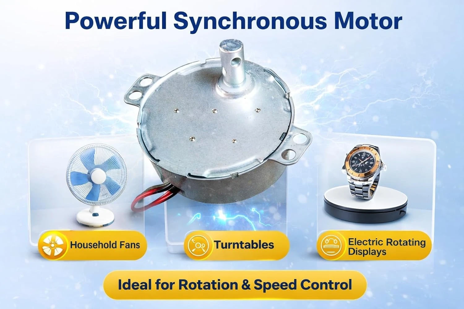 High-quality synchronous motor designed for stable speed, low noise, and long operating life — ideal for air coolers, display turntables, and rotating appliances.
