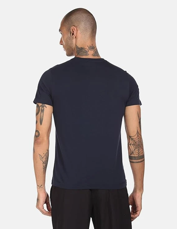 Men's Cotton Regular Fit Solid T-Shirt Crew Neck, Short Sleeves Color Navy Size Medium