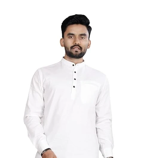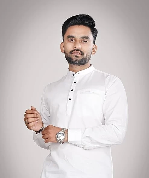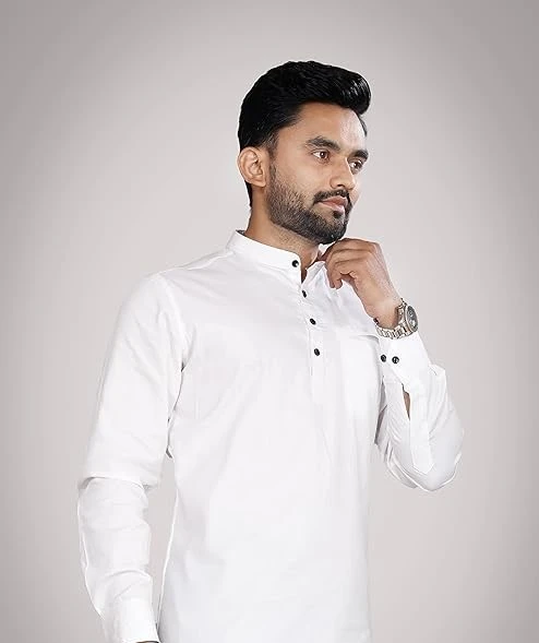 Men's Cotton Regular Short Kurta | Casual & Ethnic Wear with Long Sleeve