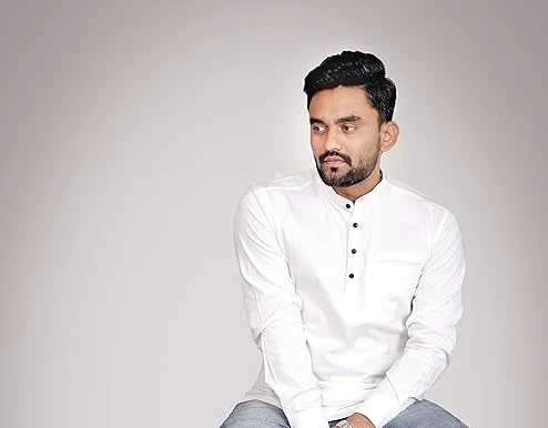 Men's Cotton Designer Short Kurta with Band Or Round Collar | Men Slim Fit Kurta Shirt