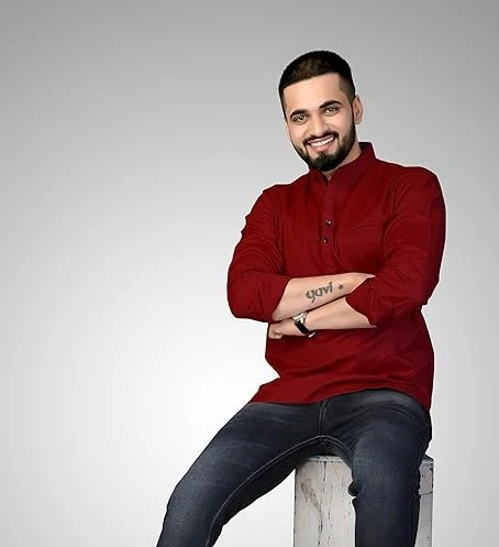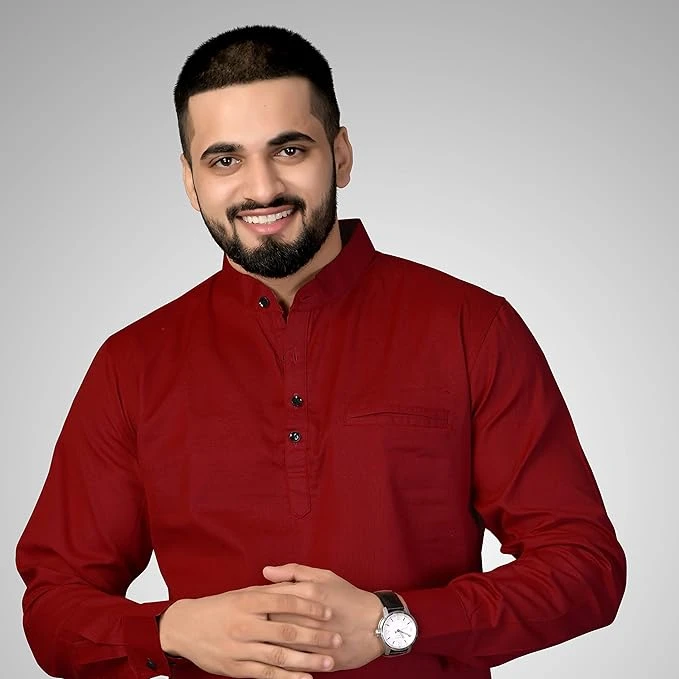 Men's Cotton Designer Short Kurta with Band Or Round Collar | Men Slim Fit Kurta Shirt
