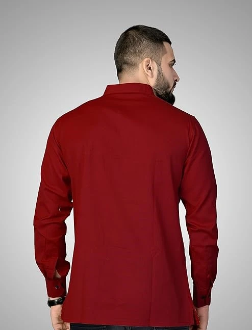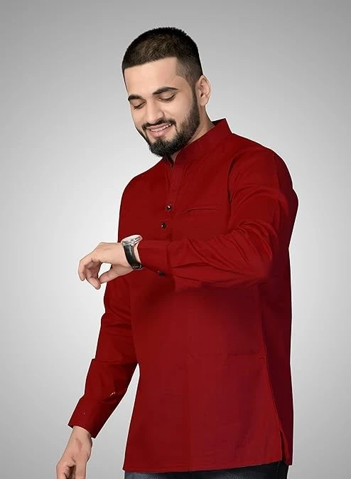 Men's Cotton Regular Short Kurta | Casual & Ethnic Wear with Long Sleeve