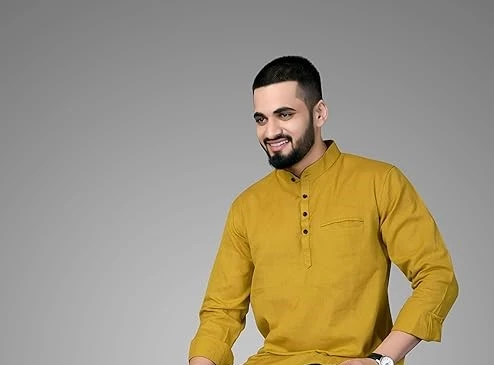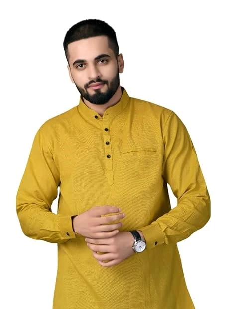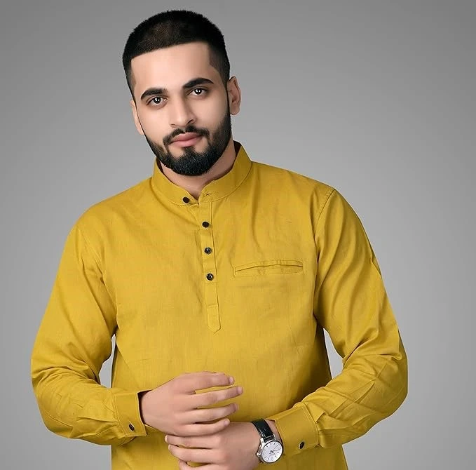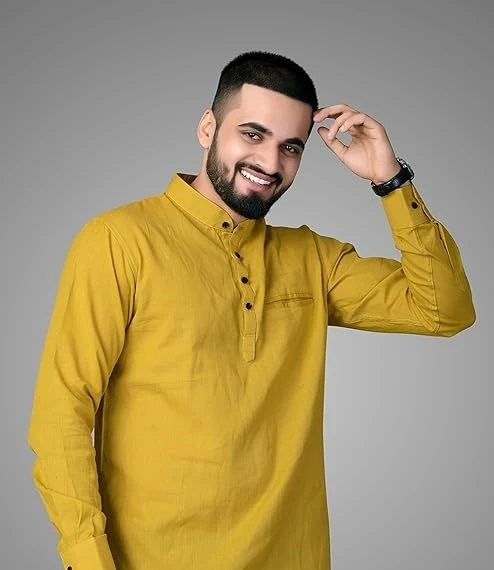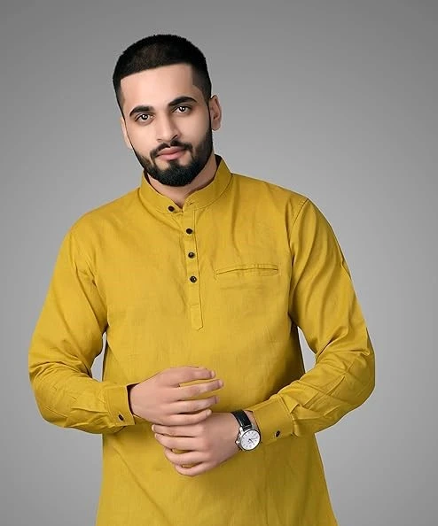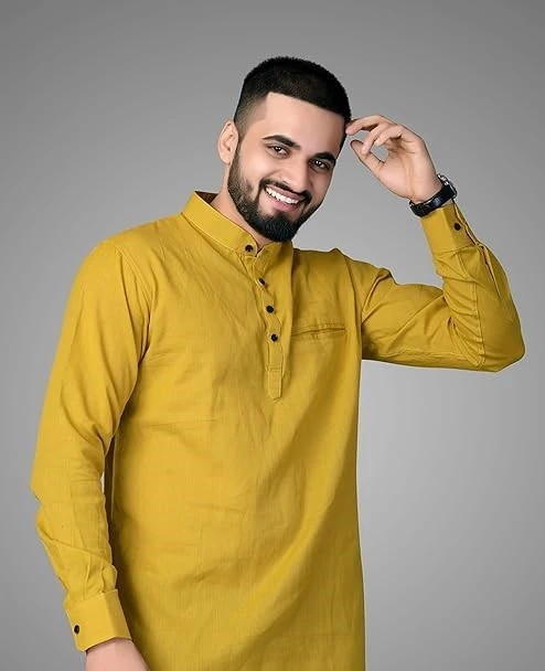 Men's Cotton Regular Short Kurta | Casual & Ethnic Wear with Long Sleeve