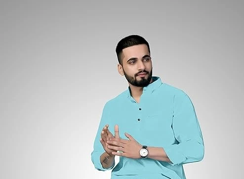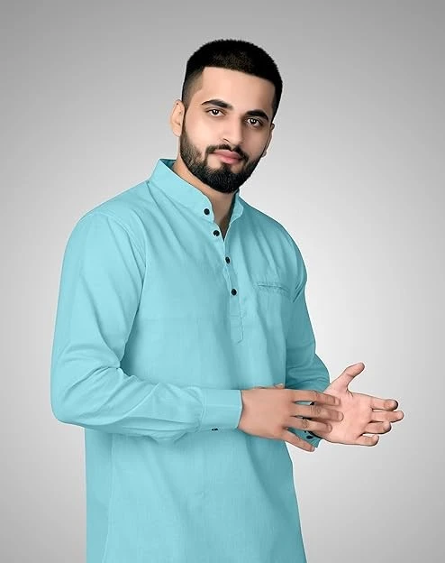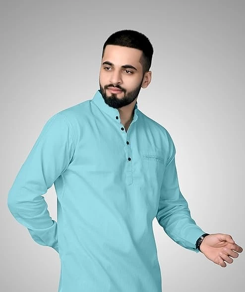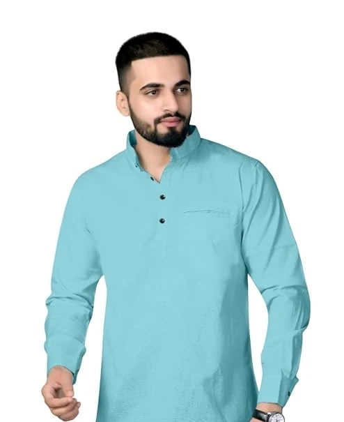 Men's Cotton Regular Short Kurta | Casual & Ethnic Wear with Long Sleeve