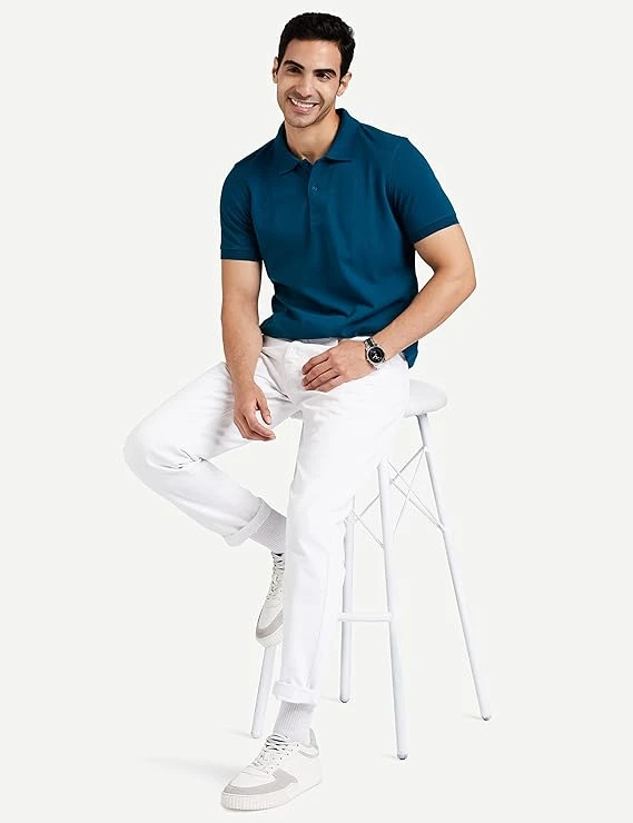 Men's Cotton Rich Solid Polo Tshirt | Collar Tshirts | Half Sleeves | Plain-Regular Fit Size Large Color Bossa Nova