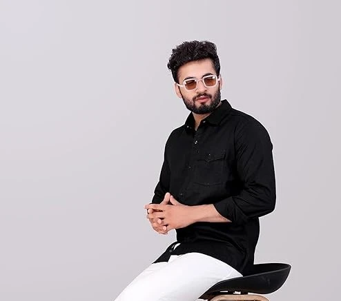 Men's Cotton Designer Short Kurta with Band Or Round Collar | Men Slim Fit Kurta Shirt
