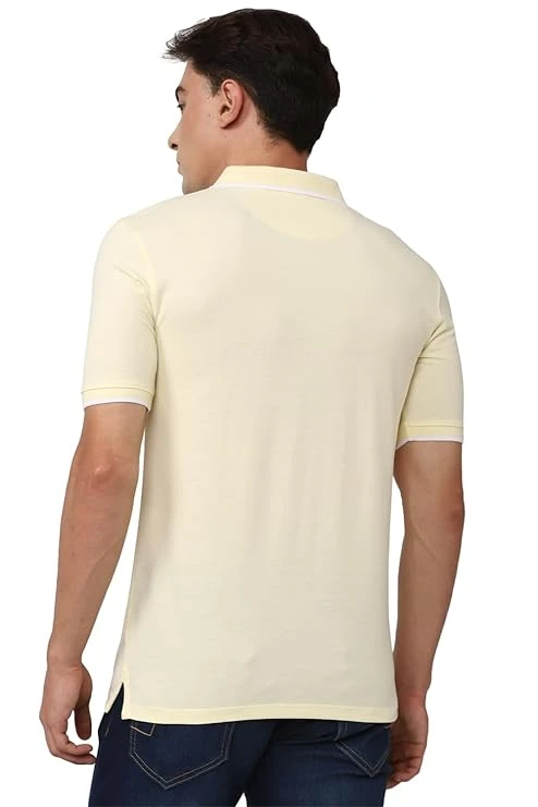 Men's Snug Fit Solid Polo T-Shirt with Coloured Collar Tipping| Cotton Rich| Premium Pique Weave Size Medium Color Cream