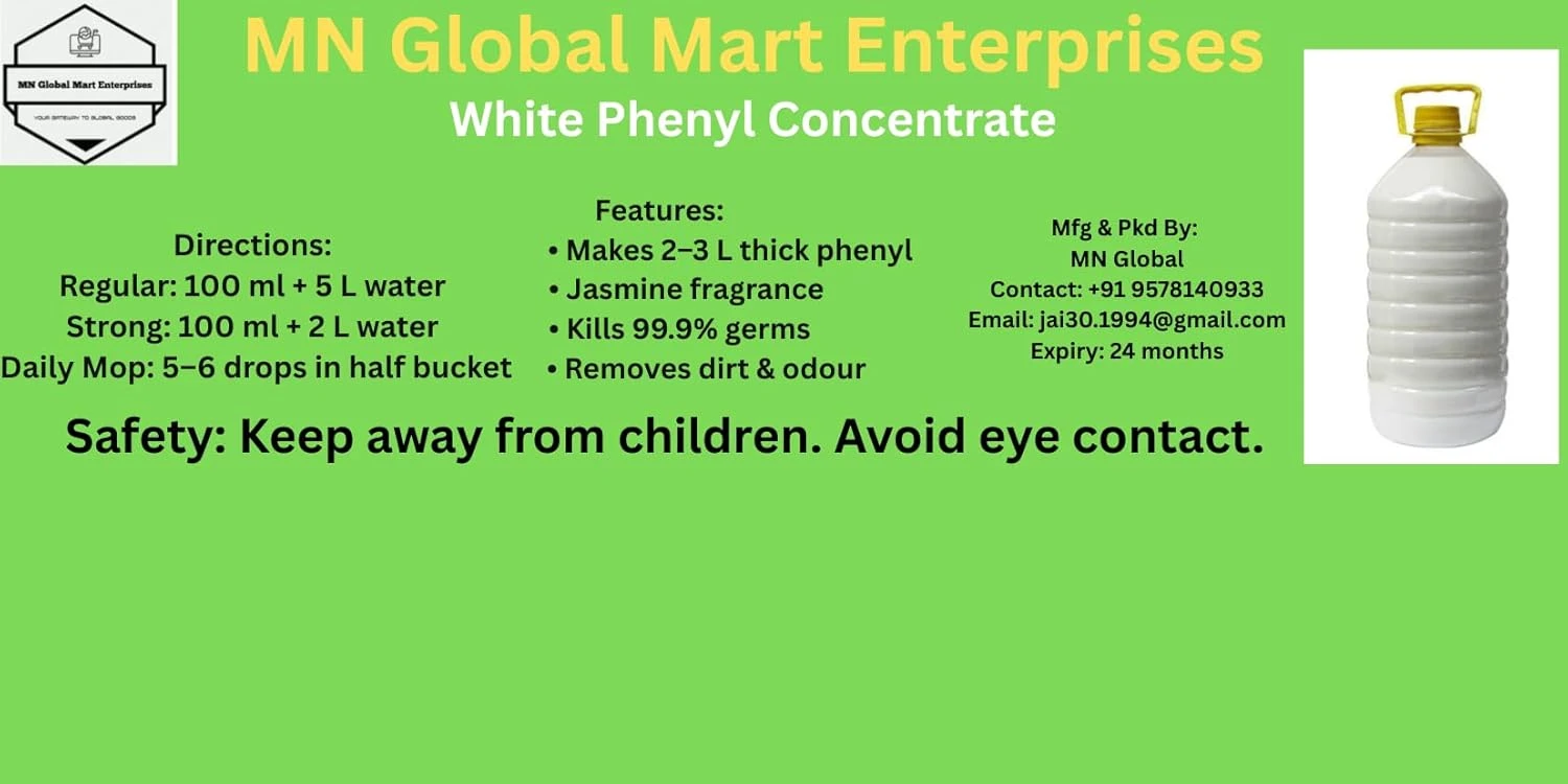 MN Global Mart Phenyl Concentrate 100ml (Pack of 2) | Makes 10–15L Thick White Phenyl | Pine‑Based Jasmine Floor Cleaner | Fast Dilution, 99.9% Germ Kill | Bathroom & Home Multipurpose Cleaner Brand: Generic 5.0 5.0 out of 5 stars (1)