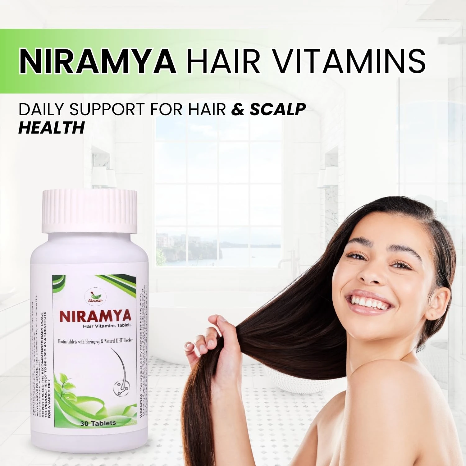 Niramya Hair Vitamin Tablets – 30 Tablets | Biotin, Zinc, Iron, Amino Acids & Herbal Extracts | Supports Hair Growth, Strength & Shine | Hair Fall Control Supplement for Men & Women