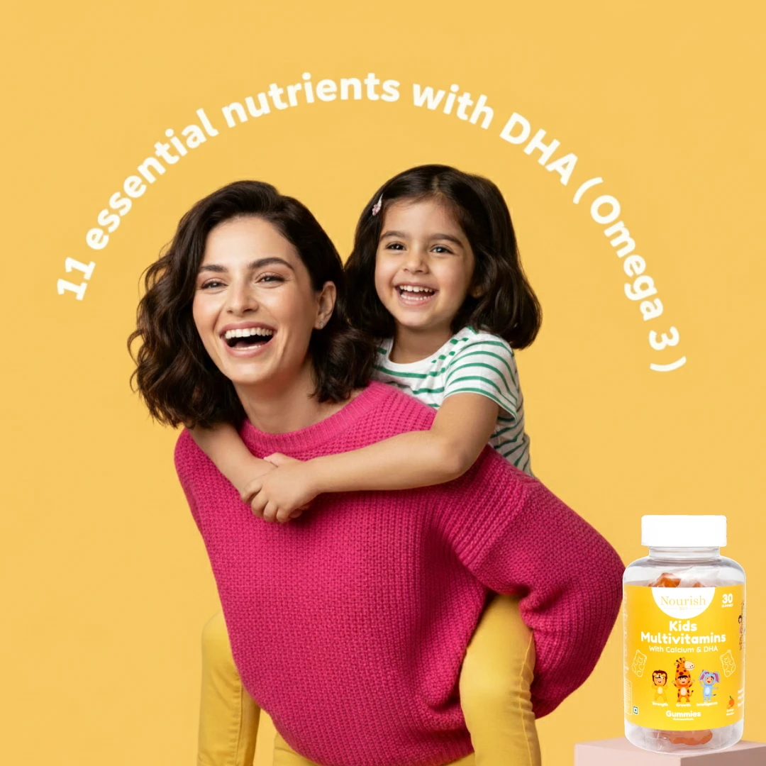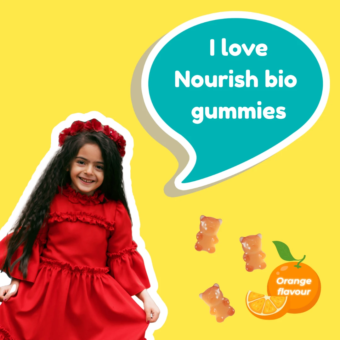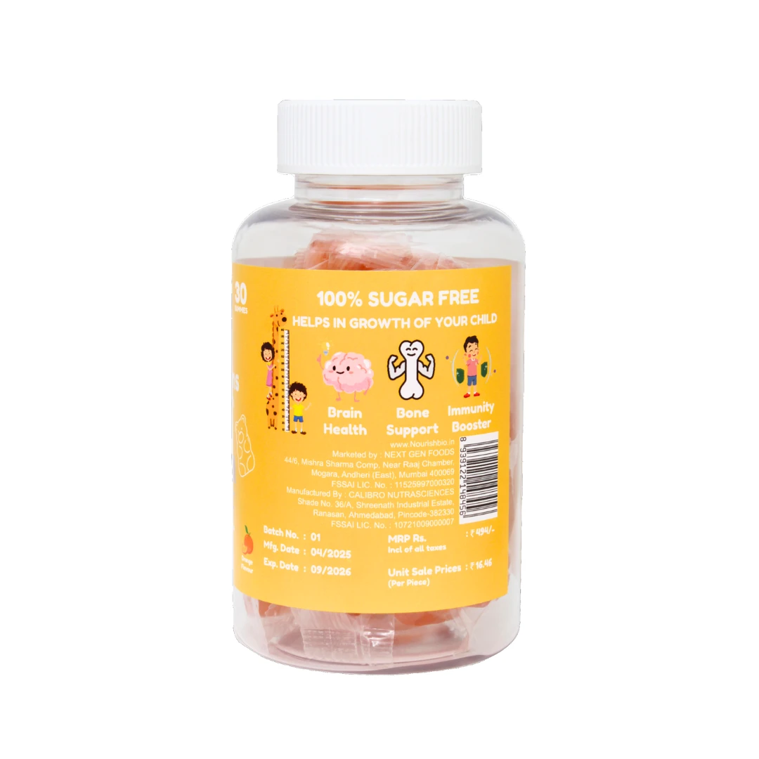 Nourish BIO Multivitamin Gummies with Calcium, Vitamin D3, A, B6, B12, C, E, for growth & development Supports Immunity, Energy and Bone Health 30 Orange-Flavored For Ages 3+ and Up (Sugar-Free)