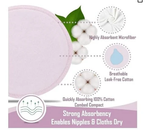 Nursing Breast Pad Soft Comfy High-Absorbent Cotton Breast Pads Reusable Maternity, Washable Nursing Pads | Super Absorbent Comfort Fit Breast Pads (White -3 Pair/ 6Piece)
