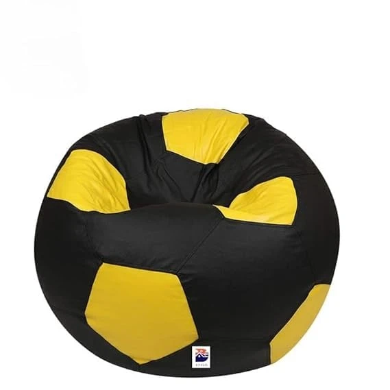 OHSTORE Faux Leather Double Colour Print Round Shape Bean Bag Cover Without Beans (Bean Bag01_Black & Yellow