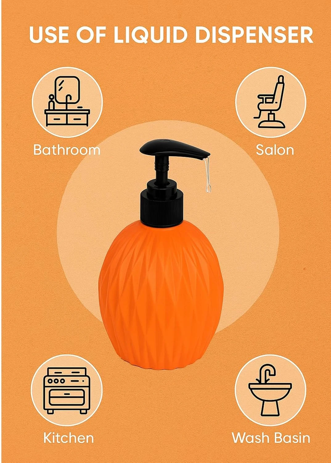 Outdoor Living Dimond Cut Design Liquid Soap Dispenser, 300ml, Multipurpose Refillable Plastic Pump for Hand Wash, Dish Wash, Shampoo, Kitchen, Bathroom, and Household Use Color Green OrangePack of 2