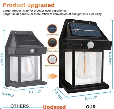 The Solar Wireless Wall Sconce has a sensitive dusk-to-dawn sensor that sensitively detects the brightness of the surrounding environment and automatically turns off at dawn and on at dusk. The Solar Dusk-to-Dawn Wall Light will keep working for up to 12 hours after fully charged during the day. Note: The switch should be turned ON before the first use.