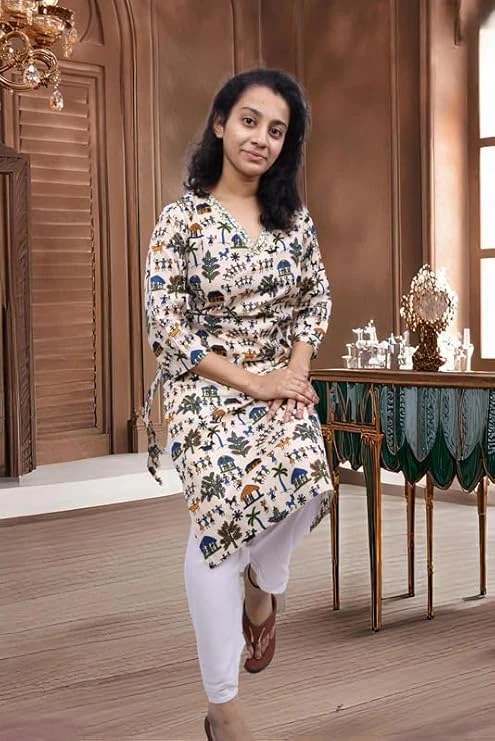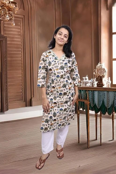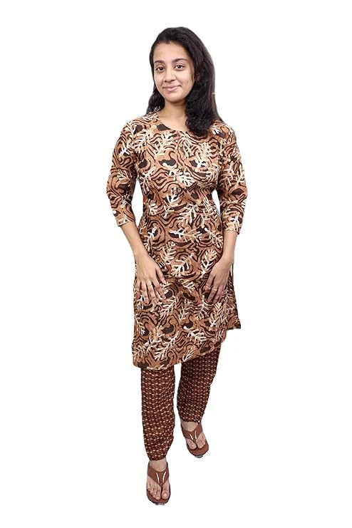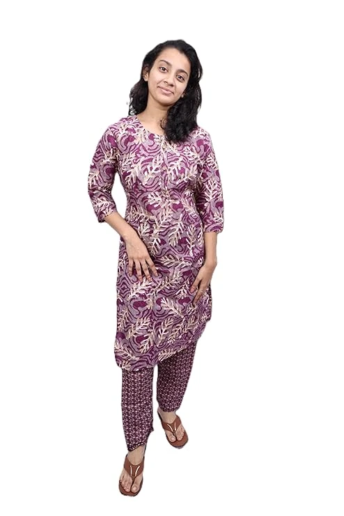 Pick Cell Printed Kurti with Pyjama | Cotton Blend and Regular Fit | Machine Washable,Casual and Festive for Women