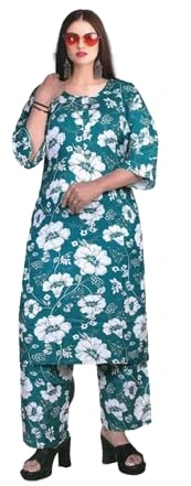 • Complete Coord Set Includes a long kurta with 3/4 sleeves and matching printed bottoms, giving you a coordinated, fashionable look without extra styling effort.