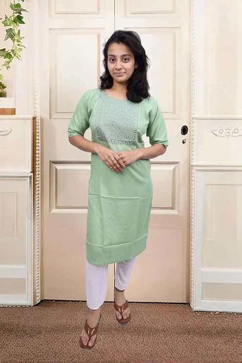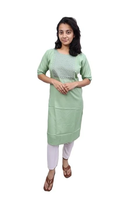 Pick Cell Women’s Kiwi Dyed Plain Rayon Kurti | Heavy Rayon Fabric | Regular Fit, Lightweight and Breathable | Elegant Daily, Office, Casual