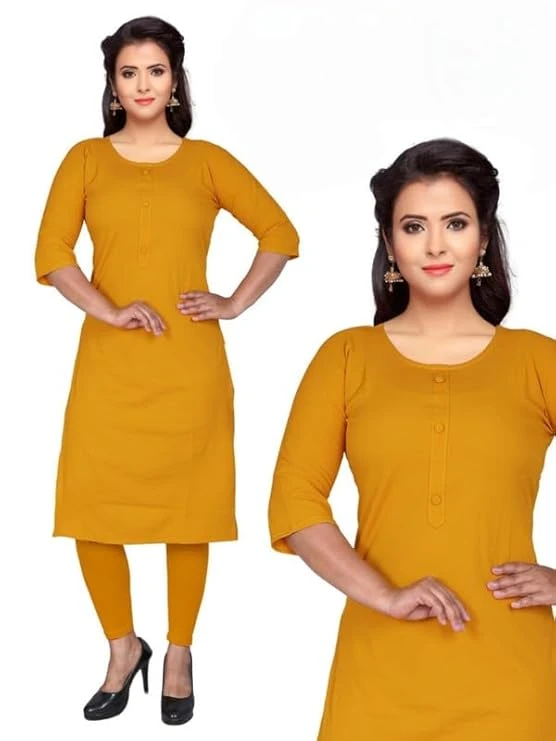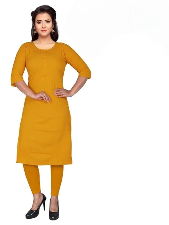 Pick Cell Women’s Mustard Plain Straight Kurti | Soft and Comfortable Cotton Blend Kurta | Stylish Casual and Ethnic Outfit for Office, Festive and Everyday Use