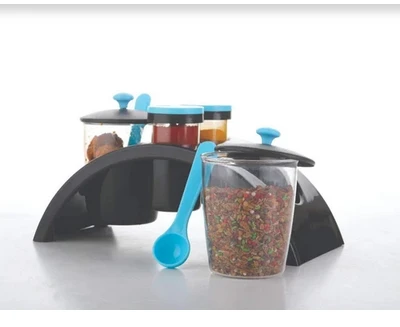 MADE IN CHINA. Set of 4 in 1 include : 2 x Pickle/Achar Jar set with spoon, 2 x Salt & Pepper/Spice Jar container with Stand