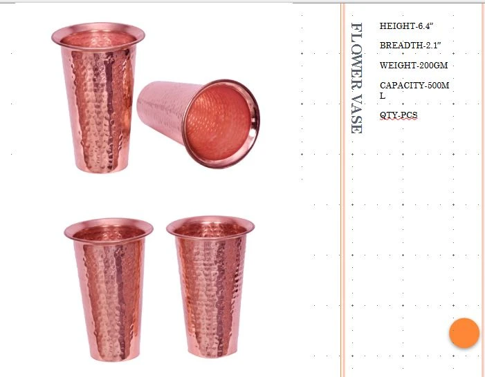 Premium polished copper glass with elegant flower design. Handcrafted with fine detailing, this copper tumbler is perfect for daily use and gifting. It adds a traditional and stylish touch to your kitchen while supporting healthy drinking habits. Durable, lightweight, and easy to clean, ideal for home and office use.