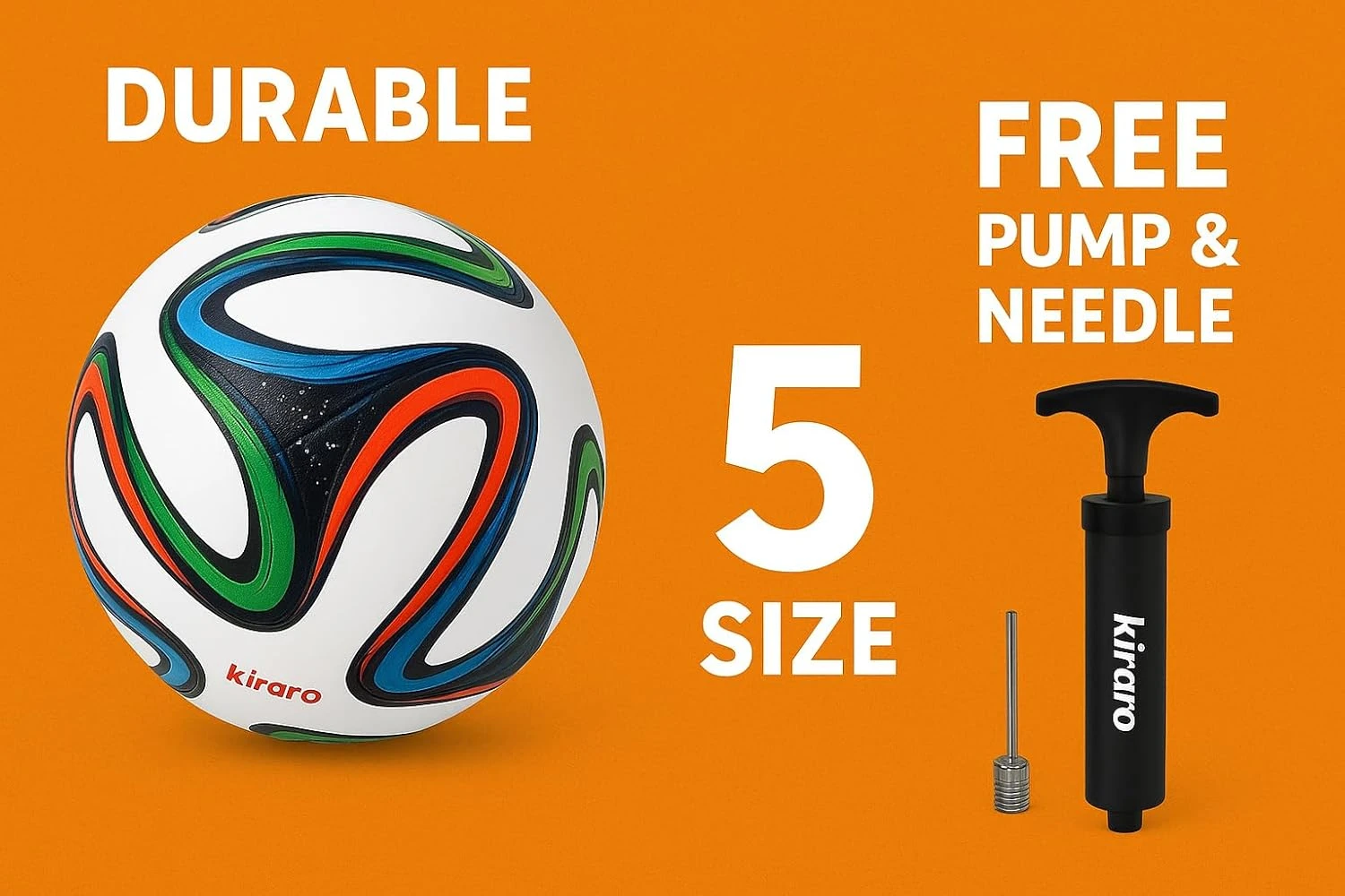 32 Panel Hand Stitched Football with Pump Size: 5 for All Ages Group Suited for The Grass Fields | PU | Practice Ball Pack of 1