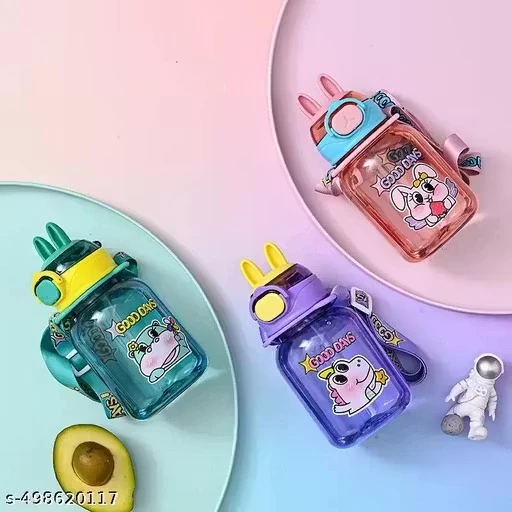 Name: Rabbit Design Portable Water Bottle for Kids with Adjustable Strap for Boys & Girls 600ML(Multicolor , Pack of 1)