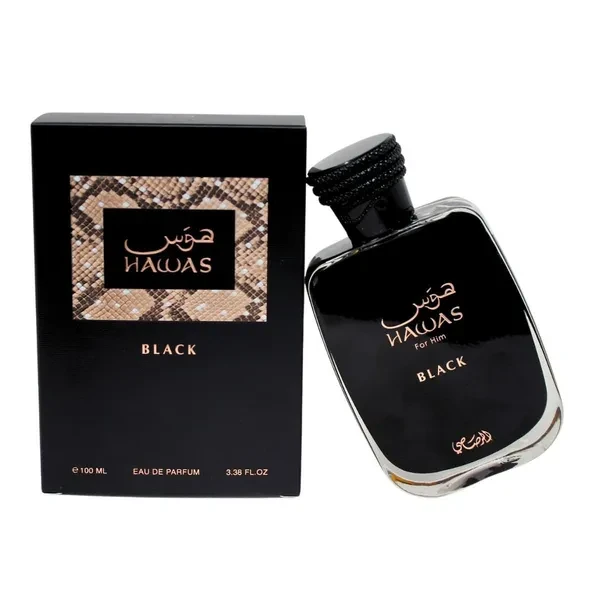 "Unleash your bold and mysterious side with Rasasi Hawas Black For Men, a powerful Eau de Parfum that embodies modern masculinity and strength. This captivating fragrance opens with an energetic burst of citrus and spicy notes, leading into a heart of warm amber and aromatic woods. The deep, sensual base of musk and patchouli leaves an unforgettable trail — perfect for men who command attention without saying a word.
