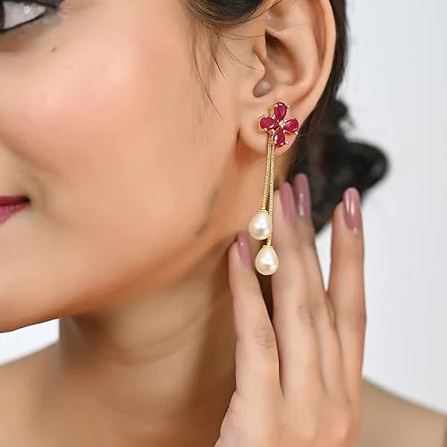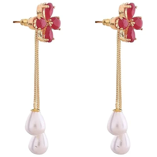 Red Color Gold Plated Sparkling Colors Pearl Dangle & Drop Earrings Tops Women/Girls