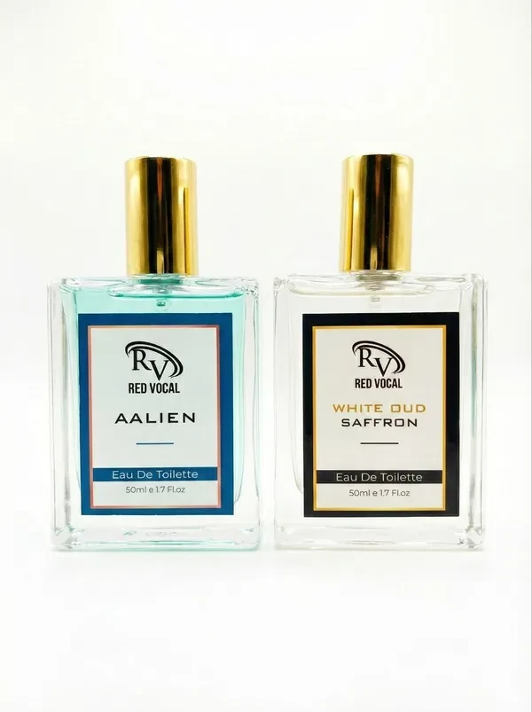 Indulge in the perfect unisex fragrance duo with Red Vocal Aalien & White Oud Saffron Premium Perfume Set. This 2 x 50ml set combines fresh, uplifting aromas with rich, exotic notes to create a bold and unforgettable presence.
