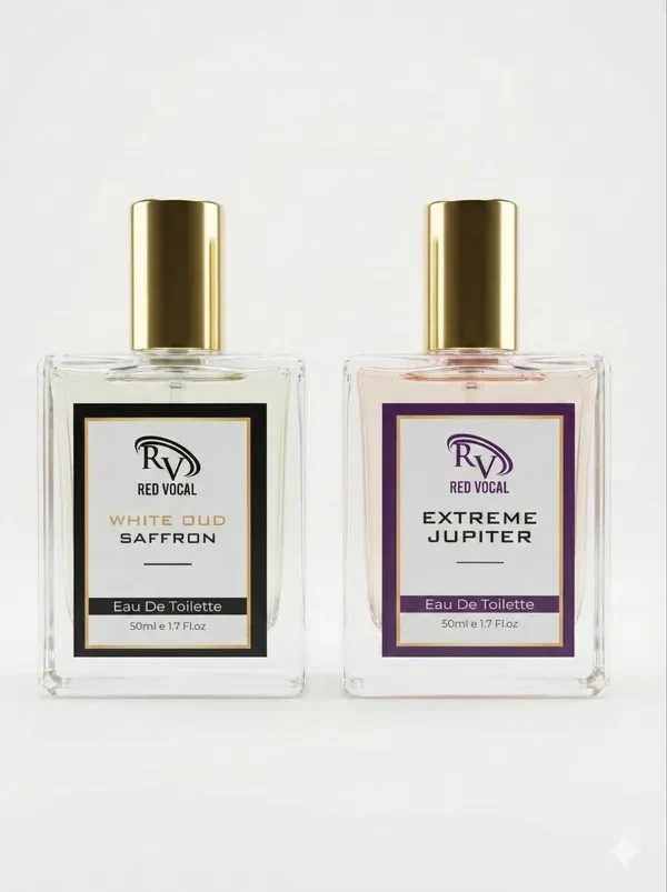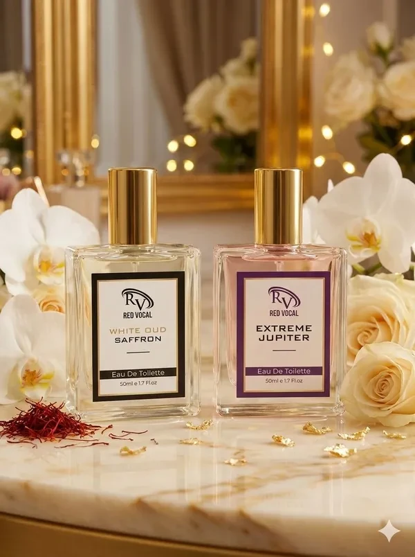 Experience luxury and long-lasting freshness with this Red Vocal Premium Perfume Set of 2, featuring White Oud Saffron and Extreme Jupiter — two bold unisex fragrances crafted for those who love to stand out with elegance.