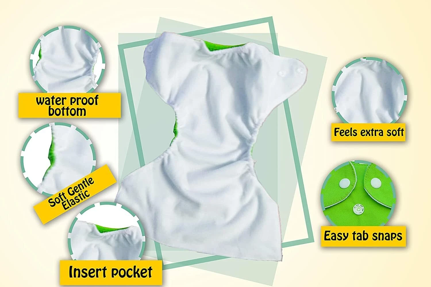 Smart snap buttons allow size adjustment from newborn to toddler – one diaper grows with your baby.