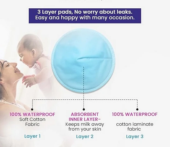 Reusable Washable Nursing Breast Pads -6 Pcs- 3D Contoured Shape For Sung Fit,Prevents Staining on Cloth, Breast Milk Leakage Pads, Feeding Pads, Reusable Breastfeeding pads for Mothers, Milk Soak Pad, Multicolor