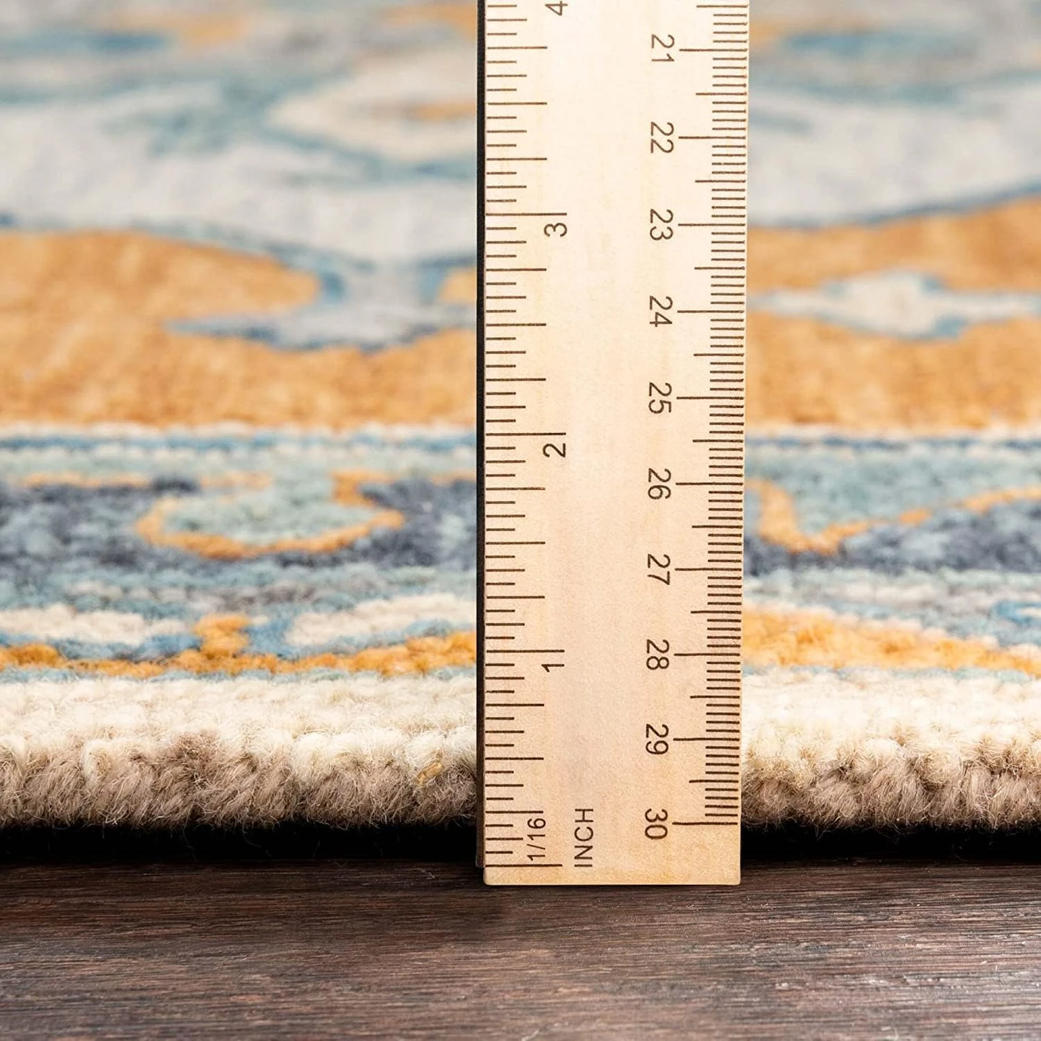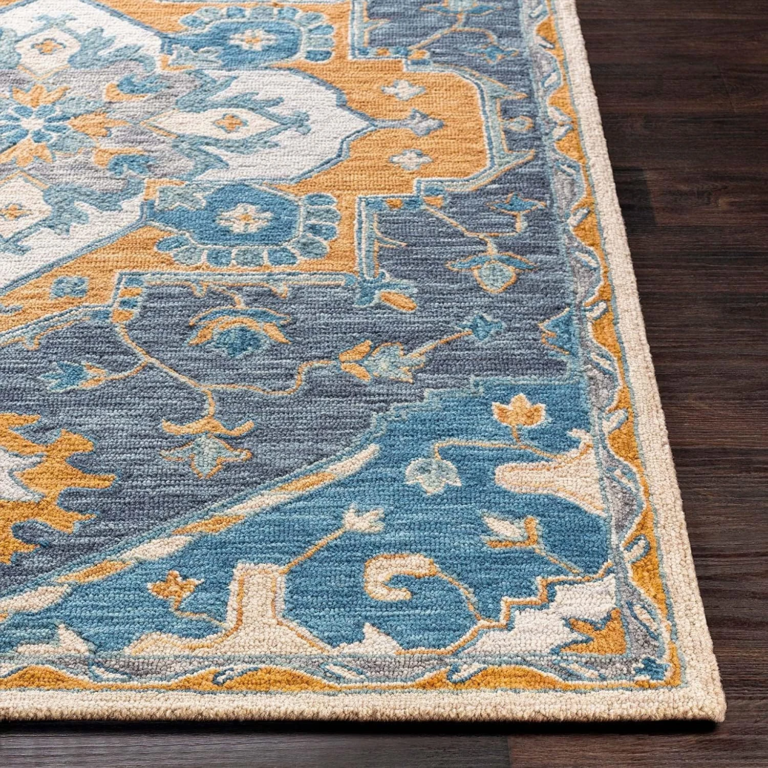 Expertly handmade woolen rug featuring loop pile construction with textured yarn for enhanced durability and visual appeal in any living space.