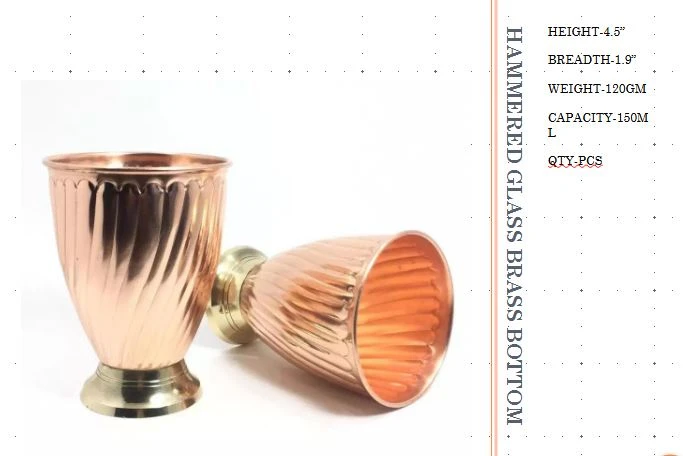 Designed for both style and functionality, this copper glass is ideal for daily use. It is commonly used for drinking water and is appreciated for its classic design and long-lasting durability. The sturdy brass bottom not only adds a decorative touch but also ensures better grip and balance, reducing the chances of slipping or tipping over.