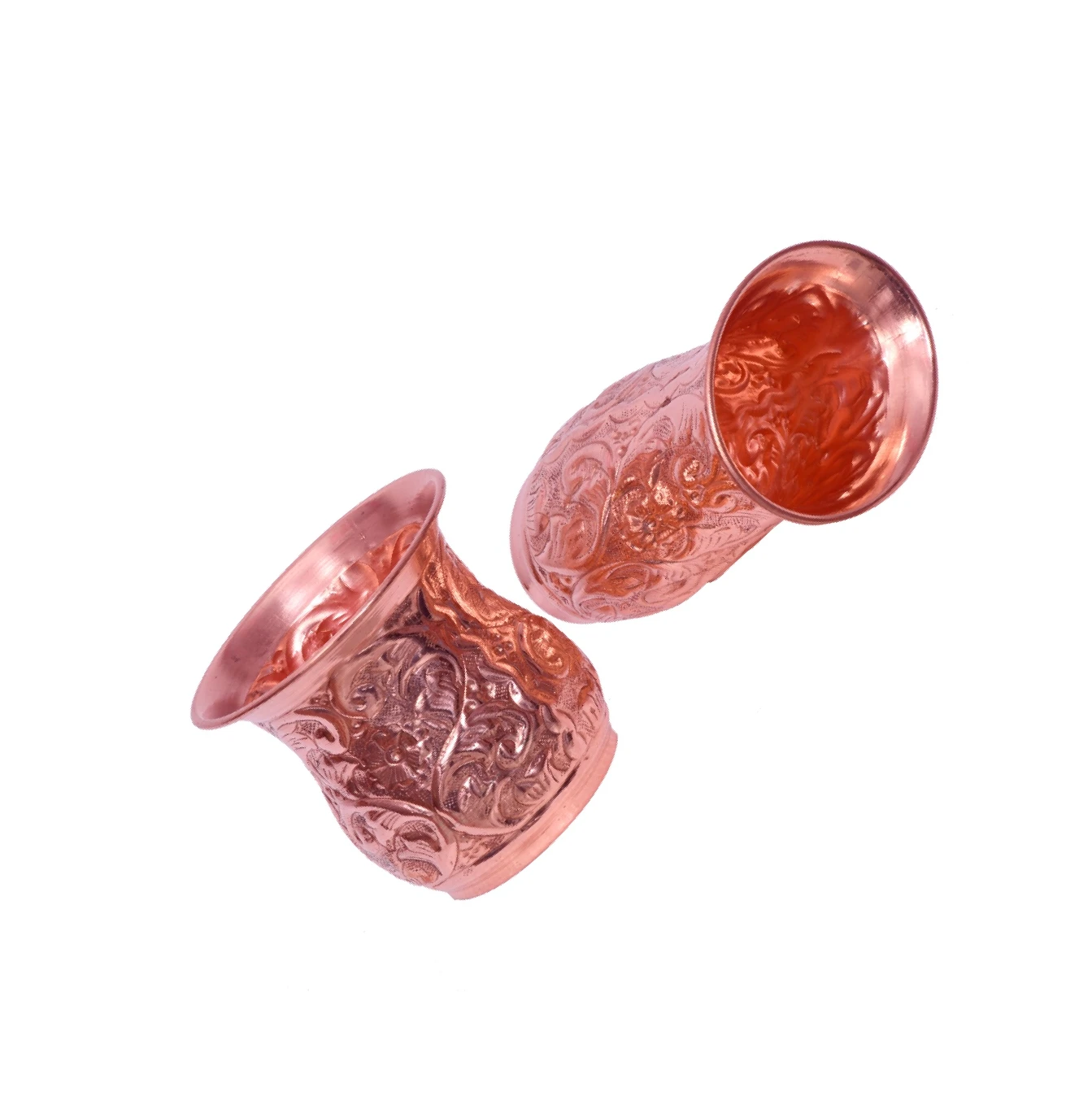 The smooth polished finish adds a rich shine, while the embossed texture provides a comfortable and secure grip. Designed for durability and long-lasting use, this copper glass is lightweight, easy to handle, and convenient for regular use. It is ideal for drinking water and serving guests in a stylish and traditional way.