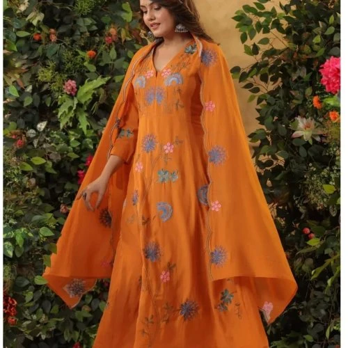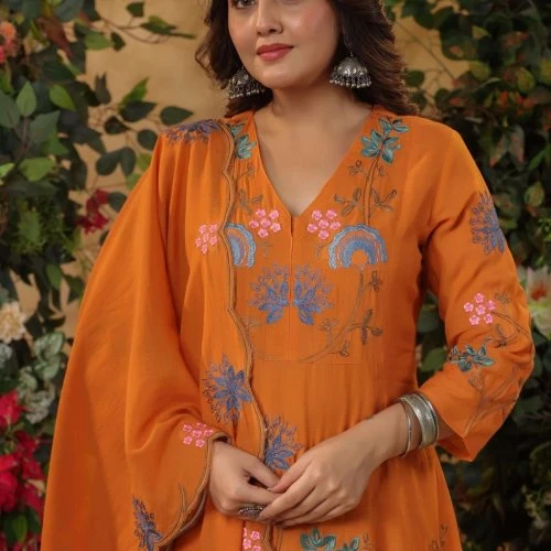 Step into elegance and comfort with our Rust Orange Viscose Chanderi Embroidered Ladies Kurta Set. This exquisite ensemble is designed for the modern woman who appreciates traditional craftsmanship with a contemporary twist. Perfect for festive occasions, casual gatherings, or a day at the office, this kurta set offers a blend of style and comfort that is hard to resist.