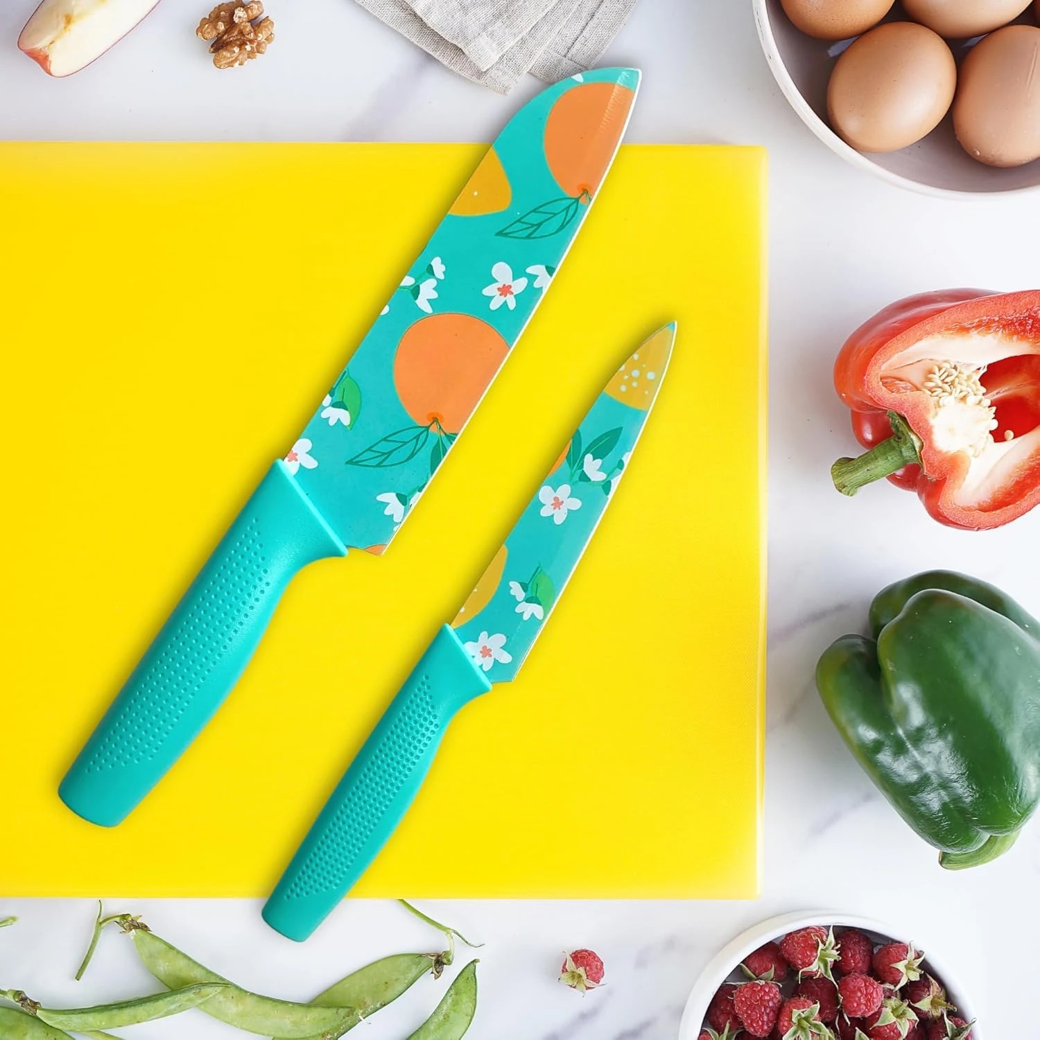 4. Different patterns and colors help reduce the risk of cross-contamination when chopping all kinds of food. It is ideal for slicing, mincing & chopping vegetables & meat.