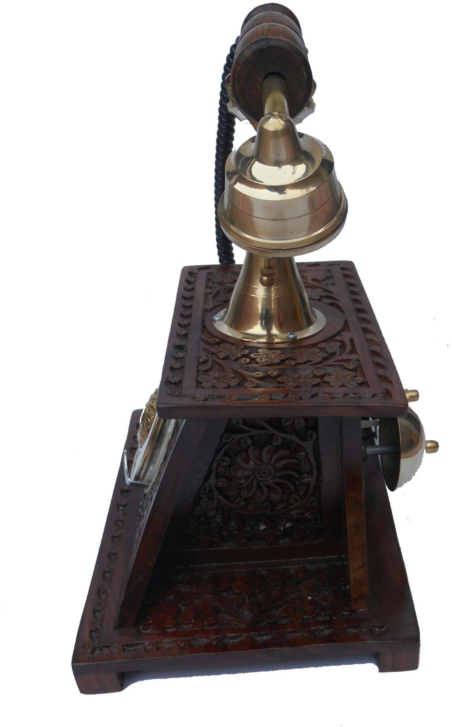 This Is An Hand Made Operational Sheesham Wood And Brass Made Antique Operational Telephone In Maharaja Style This Is An Grand Showpiece And Underline Artistic Excellence.. This Royal Looking Telephone Give Your House Regal And Elegant Touch. This Telephone Also Add To The Collection Of Your Antiques. The Retro Telephone Is An Ideal Gifting Item To Your Dear Ones. Design And Material Looking Majestic Wuth It Wonderful Form Of Art Work. This Telephone Has The Wooden Body Which Lends It Durability. The Receiver And The Dialler Are Highlighted With Fine Detailing And Prove To Be Functional When It Is Used. Care Instructions - Keep This Showpiece Clean By Weeping It With A Soft Cloath When Required. Note- This Is An Wooden Made Product So Slightly Change In Colour May Be Possible In Each Piece.