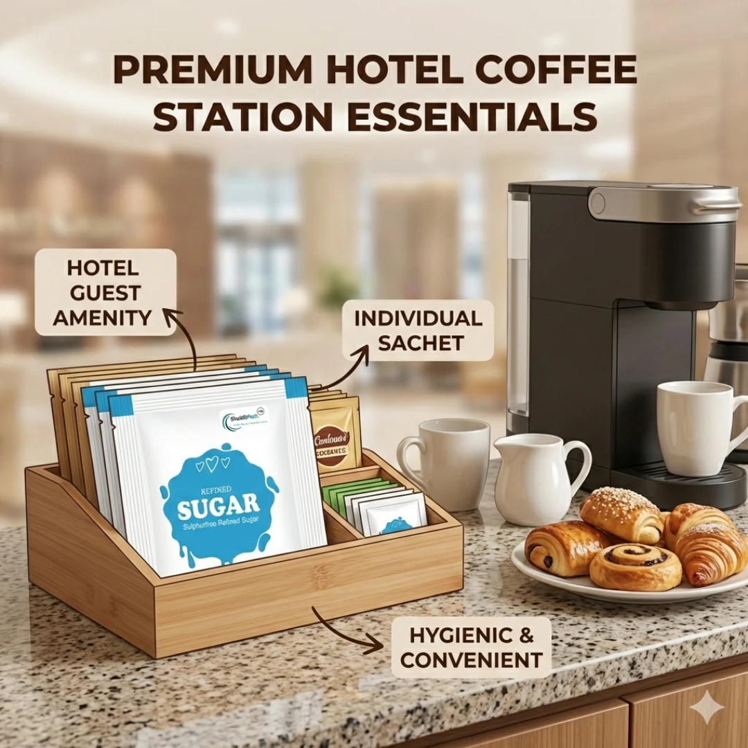 ShuddhPack sugar packets offer premium quality, consistent sweetness, and easy serving, making them ideal for hospitality businesses and daily use.