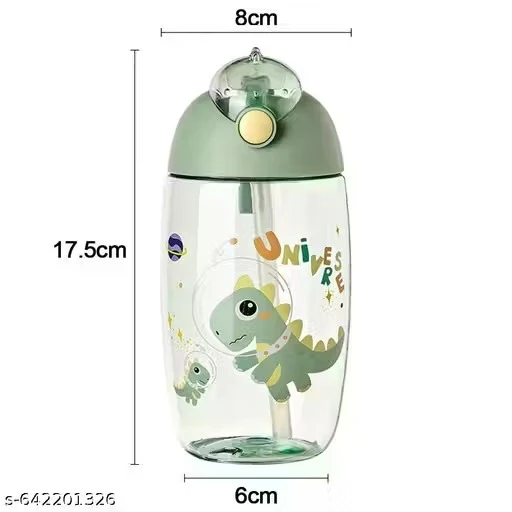Name: SMALL CUTE DINO PRINT PLASTIC WATER BOTTLE WITH STARW AND HANDY SIDE RUBBER ROPE BUTTON WITH STRAW 600ML (PACK OF 1) NO COLOUR CHOICE RANDOM COLOUR SELECTION
