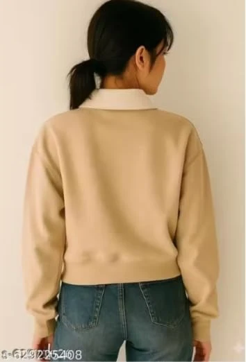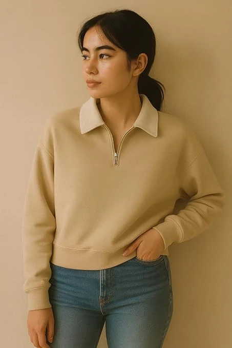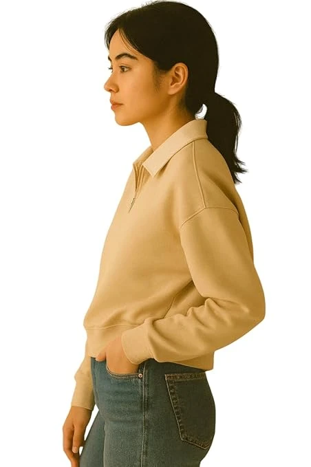 Talitha Fashion Boston Collegiate Half-Zip Sweatshirt, Cotton Blend Collar, Women's Super Combed Cotton Elastane Stretch Sweatshirt with Round Neck (in, Regular, Cream)