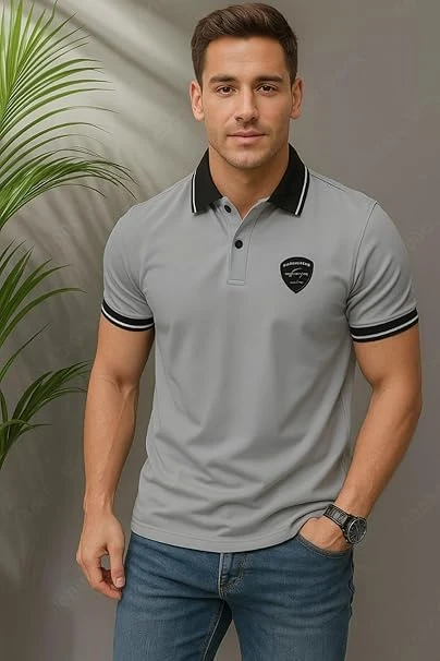 Talitha Fashion Classic Polo Shirt, Men's Cotton Rich Solid Polo Tshirt | Collar Tshirts | Half Sleeves | Plain-Regular Fit, Casual Wear Color Grey