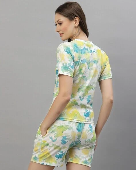 Talitha Fashion Women’s Cotton Half Pajama Set with Top & Pants Lycra Printed & Knitted Round Neck Nightwear Sets | Short Sleeve Nightsuite for Women and Girls Nightdress