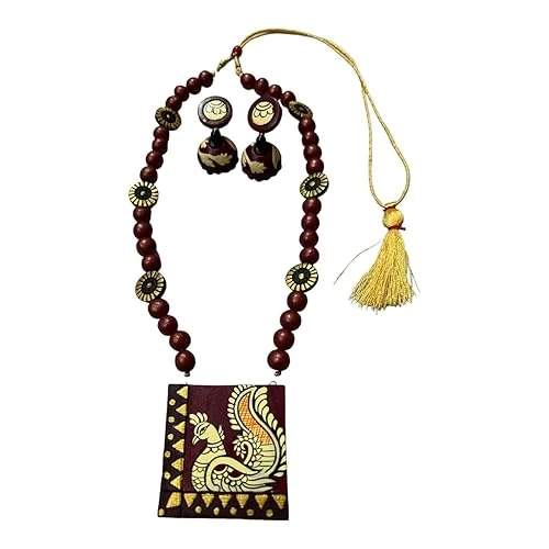 Terracotta Necklace Earrings Set for women and girls, Handmade Necklace Jewellery, Traditional Terracotta Jewellery Necklace Earring Set for party, occasion, Daily use