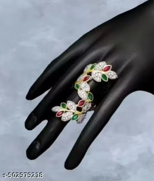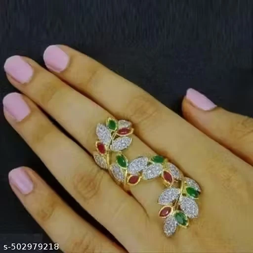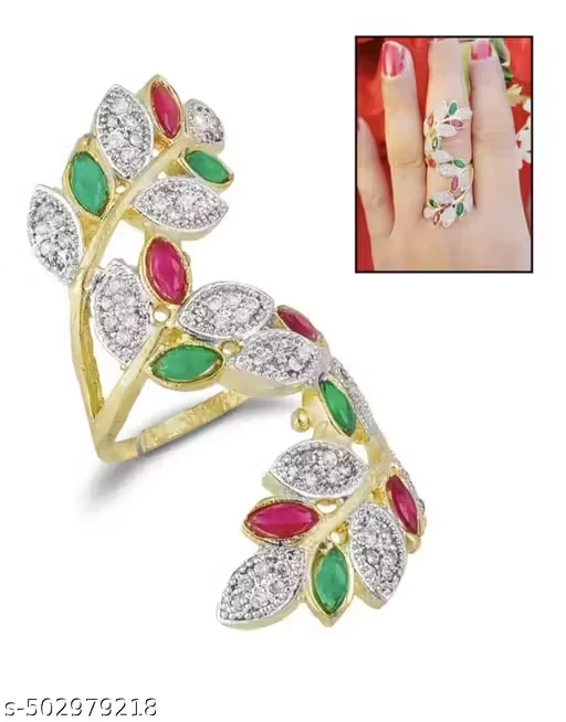 Crafted with fine detailing, this ring features sparkling stone work that enhances its overall beauty. The gold-tone finish gives it a luxurious and fashionable appeal.