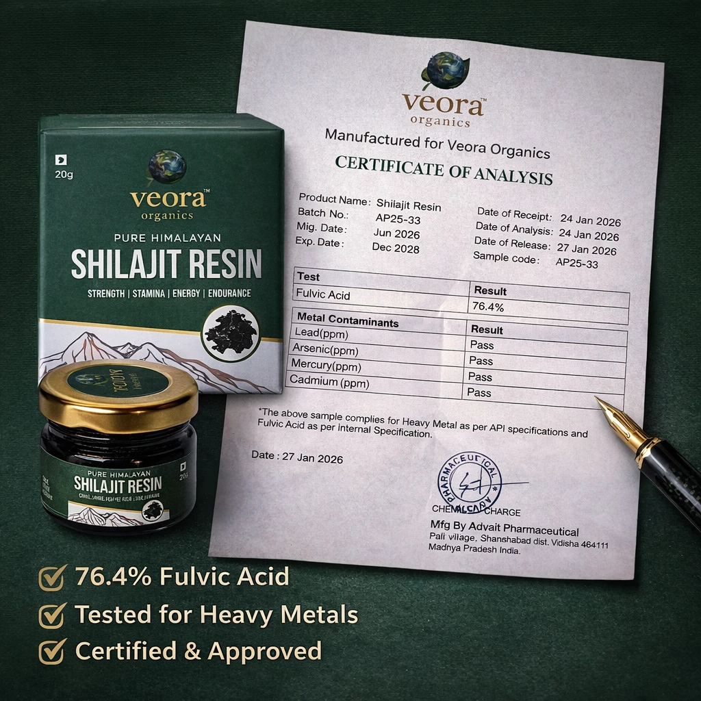 At Veora Organics, we ensure our shilajit is lab tested for purity and quality, giving you a safe, authentic, and highly effective resin to fuel your daily performance and wellness.