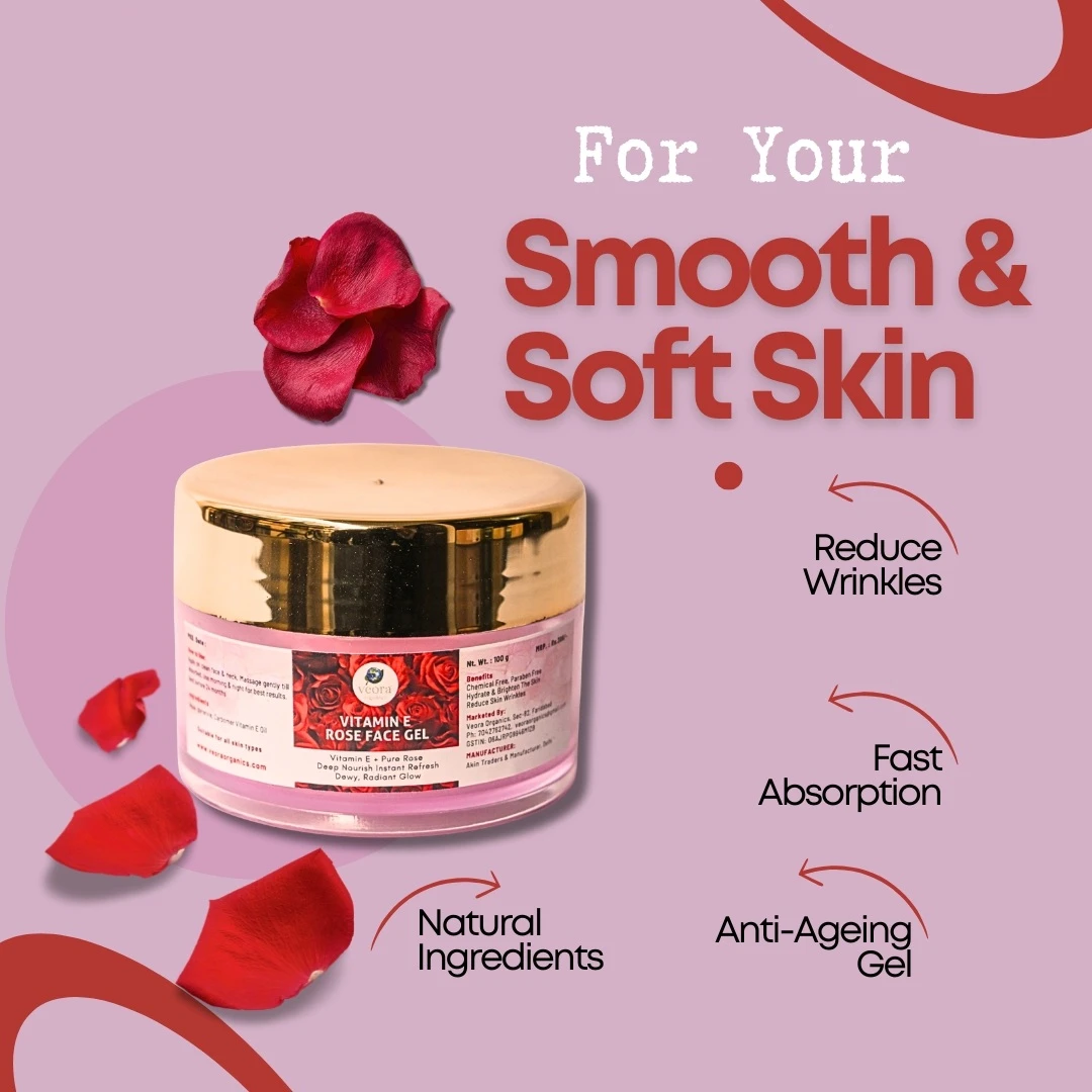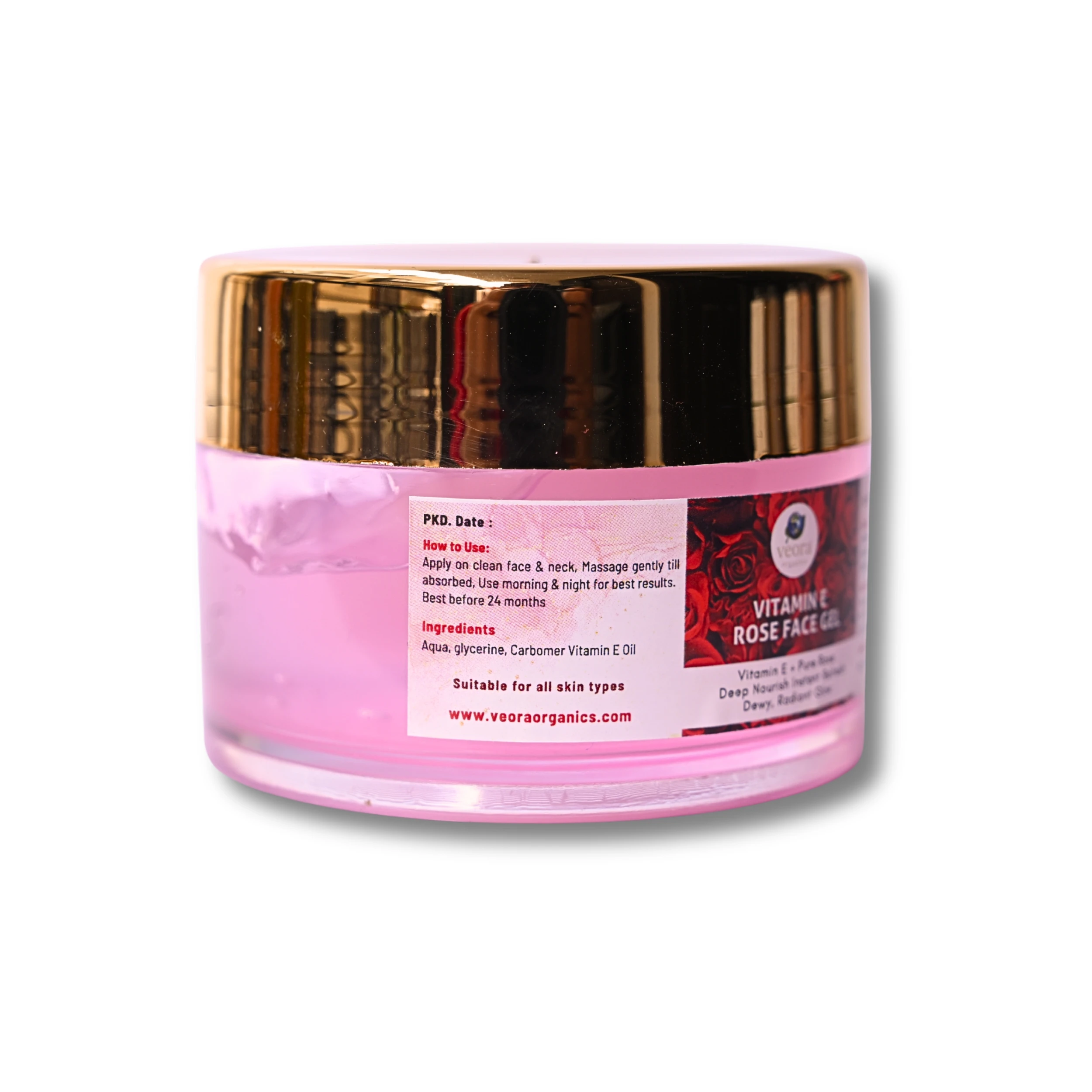 Reveal naturally radiant, youthful, and well-nourished skin with Veora Organics Vitamin E Rose Gel. Specially formulated using pure natural rose extract and skin-loving Vitamin E, this gel is designed to deliver deep hydration, repair damage, and enhance your skin’s overall texture.